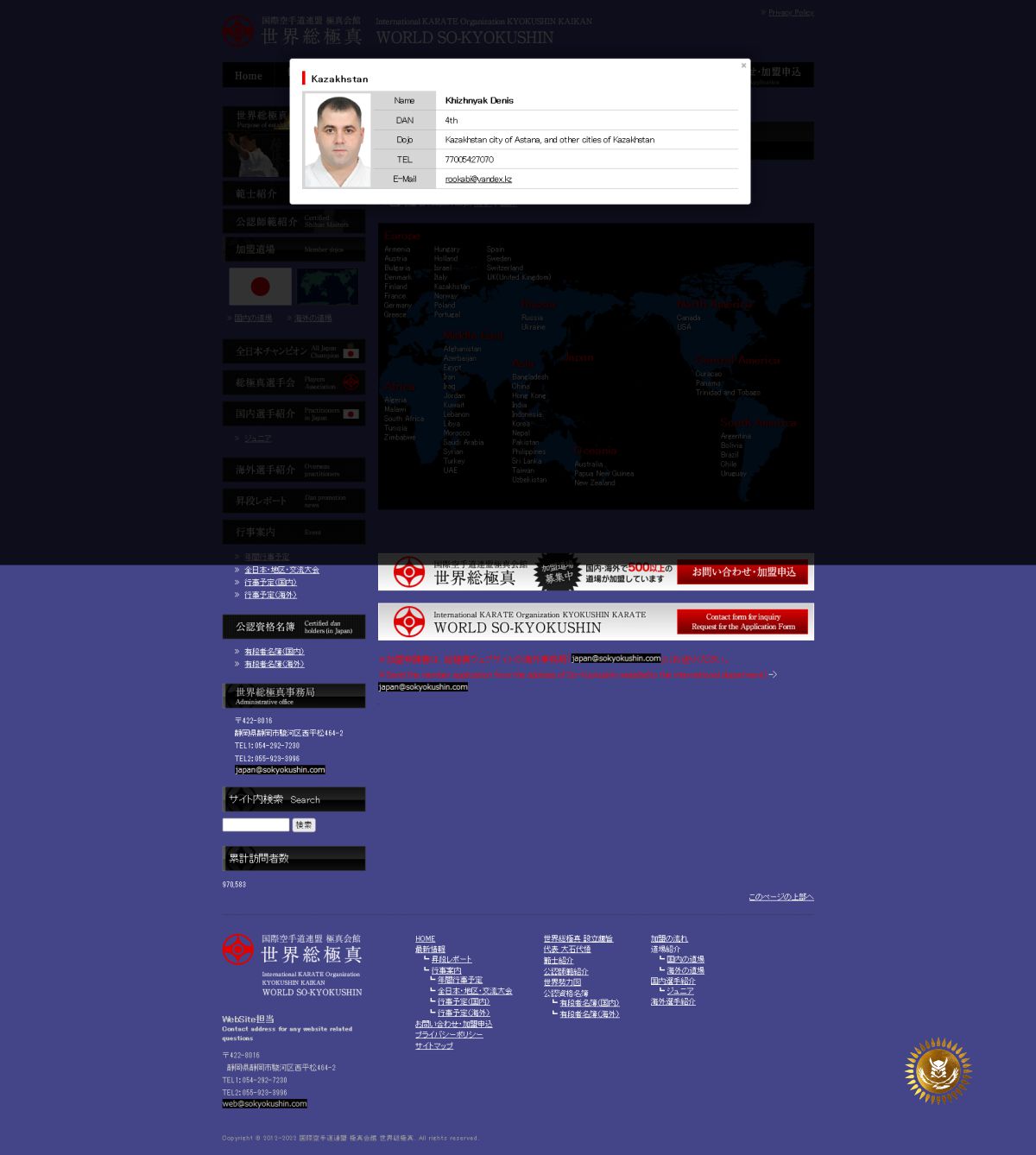 Сегодня, 21-го ноября 2022 г., в нашей организации произошло знаменательное событие. Мы вступили в международную организацию World So-Kyokushin, президентом которой является Daigo Ohishi (9 дан), ученик создателя Kyokushin Karate легендарного мастера карате Масутатцу Оямы. World So-Kyokushin имеет представительство в более, чем 70 странах мира, а теперь и в республике Казахстан. (Здесь можно увидеть карту стран-участниц международной организации.)